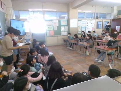 今日は、総合的な学習で学んだことを2年生に伝えました。