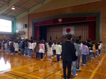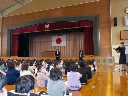 着任式では、新しく来られた先生方の自己紹介を聞いて、うれしい気持ちを拍手で伝えていました。