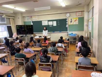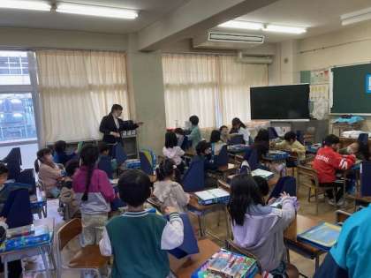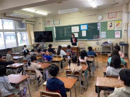 始業式での担任発表後、子供たちは学級で新しい担任の先生との出会いを楽しみました。