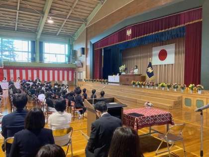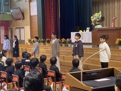 4月7日9:30より入学式を行いました。校長先生から「たくましく生きる呉羽っ子めざして、がんばってください」という言葉に元気よく返事をする1年生が素敵でした。その後、6年生代表によるお祝いの言葉を、目を輝かせながら聞いていました。