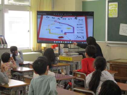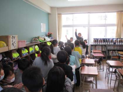 今日は、1年生の時と避難経路が変わったので、火災が発生した場所に応じて、どのコースを通ってグラウンドへ避難すればよいかを確認しました。実際に、教室で2列に並ぶ練習も行い、静かに素早く並ぶことができました。