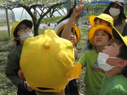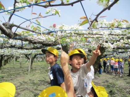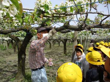 今日は、梨の人工交配の作業を体験しました。梨の花を見ながら、楽しそうに作業をしていました。