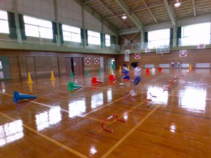 子供たちは、体育座りからすばやく立ち上がってスタートしたり、スキップで進んだりするなどして、楽しみながら学習に取り組んでいます。