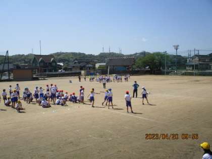 6年生 リレー練習 公開日 2023/04/21 更新日 2023/04/21 6年生の活動 赤・白・青・黄団のメンバーも決まり、リレーの練習を始めています。さすが最上級生、力強い走りで、盛り上がっています。