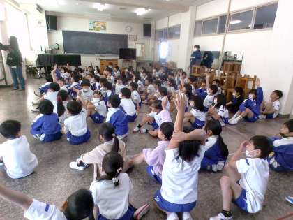 2年生は生活科で野菜を育てます。苗を植えるために必要なことを考え、準備しています。子供たちは、畑の土について詳しいゲストティーチャーの方に、「土をふわふわにするのはなぜですか?」「水の量はどのくらいがいいんですか?」などとたくさん質問していました。初めて聞くことに「そうなんだ!」とうなずきながら興味をもって聞いていました。