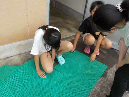 プール清掃をしました。みんなでプールの壁を一生懸命磨いたり、更衣室やトイレを掃除したりしました。子供たちは、きれいになったプール等を満足そうに見ていました。全校のみんなに気持ちよく水泳学習に取り組んでもらいたいですね。
