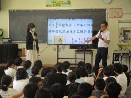 昨年末に1度オンラインで交流した台湾の高雄市の小学校の卒業生と対面で親睦を深める機会がありました。これまで外国語で学習したフレーズを活かして、写真とジェスチャーを交えながら楽しく会話することができました。国による違いを感じるとともに、互いに共通で学んでいる英語で話すことのよさと大切さを実感したようです。