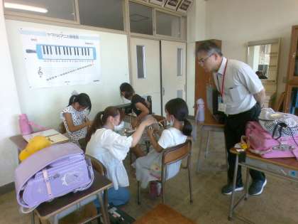今日は、1学期最後のクラブ活動でした。ブラスバンドクラブでは、CSスタッフの方に教えていただきながら、熱心に練習しました。いい音が出るせるように、2学期も練習を頑張りたいです。