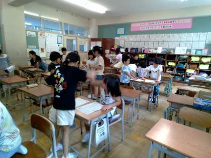 2年生 2学期が始まりました 公開日 2023/08/30 更新日 2023/08/30 2年生の活動 2学期がスタートし、夏休み中の楽しい思い出話をビンゴ形式で聞き合いました。友達の話を詳しく聞くためにさまざまな質問し、「2学期もよろしくね」などと言いながら笑顔で声をかけ相手を変えていました。楽しい話をたくさん聞くことができました。