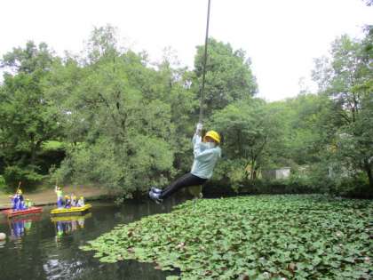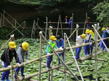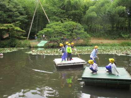 4年生 自然体験学習その1 公開日 2023/09/05 更新日 2023/09/05 4年生の活動 4年生は、呉羽青少年自然の家に自然体験学習に行きました。 自然のおいしい空気の中で、友達と楽しく遊びました。 画像は、池遊びの一部(ターザンロープ、池ジャングル、いかだ乗り)です。 ハラハラどきどきの子供たちでした。