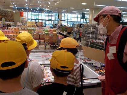 今日、アルビス呉羽東店に社会科見学に行きました。スーパーマーケットの秘密を発見しようと、疑問に思ったことを店員さんに質問したり、自分で実際に買い物をしたりしたりするなど、充実した学習の時間になりました。