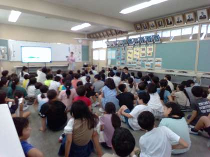 今日各クラスで話し合った「くれはの宝」の中間発表会をしました。それぞれ話し合ったことをまとめて、友達に上手に伝えていました。最後に校長先生からたくさんアドバイスをいただきました。