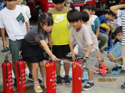 ・消防署では、どんな仕事をしているかなど学んだり消火体験をしたりしました。