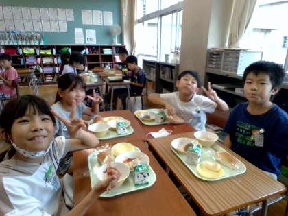 4年生 初めてのグループ給食