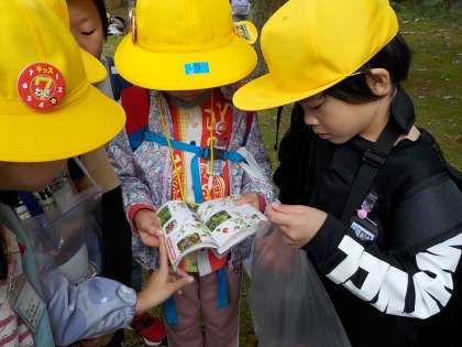 心配していた天候。みんなの祈りが届いたのか、おかげさまで子供たちの活動中は、雨に降られず思い切り秋見つけができました。くりやどんぐり、不思議な木の実、きれいな色の落ち葉など、たくさんの秋の宝物を集めました。本日、持ち帰りますので話を聞いてあげてください。拾った秋の宝物を使って、アサガオのリース作りやおもちゃ作りをしたいと思っています。