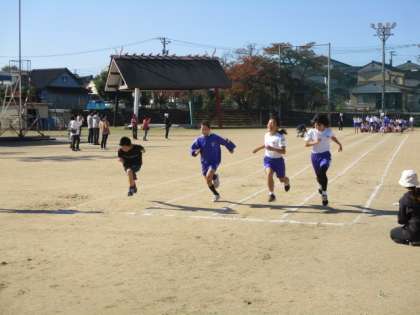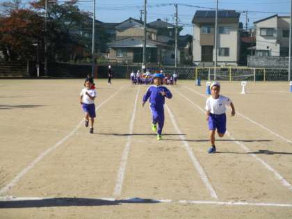 さわやかな秋晴れの下、子供たちは50m走に挑戦しています。春の記録より少しでも速くなるように、みんながんばっています。一人一人の記録を計測しているので、結果が楽しみです。たくさんの保護者の皆さんが静かに見守りながら応援してくださっています。ありがとうございます。