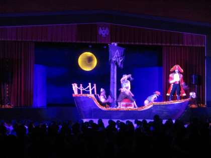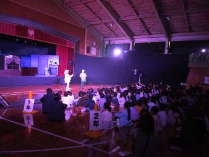 劇団ポプラによる「ピーターパンとウェンディ」の公演を鑑賞しました。体育館が劇場のようになり、開演前からわくわくしていました。役者の動きや大きな海賊船の登場に驚いたり、台詞や歌に聴き入ったりと、劇の世界を十分楽しんだ子供たちでした。