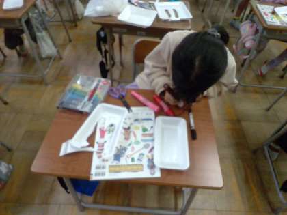 2年生は生活科で、身近なものを使っておもちゃづくりに取り組んでいます。