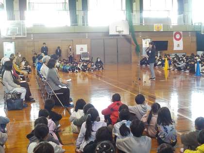 見守り隊の方々やCSスタッフの方々、地域の関係団体の方々をお招きして「感謝の集い」を行いました。わかたか児童会長、SDGS委員会の代表からお礼の言葉や感謝状、SDGSものさしの贈呈を行いました。また、感謝の気持ちを込めて全校児童で「赤い屋根の家」を歌いました。「子供たちが安心して活動できるのは、みなさまのおかげです」校長の謝辞に多くの子供たちが頷いていました。