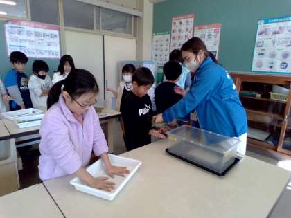 1学期に育てていたホクリクサンショウウオが大きく成長して、戻ってきました。触ることはできませんでしたが、みんなとっても嬉しそうです。