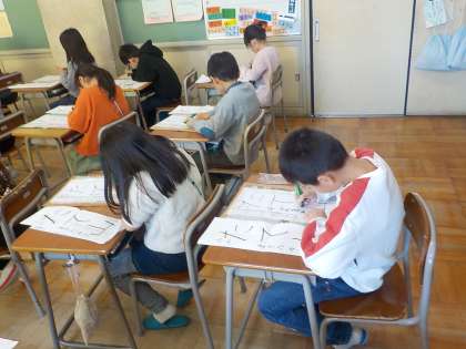 どの学級でも、凜とした雰囲気の中、丁寧に書に臨みました。