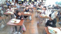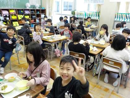 今日から、給食が始まりました。友達の顔を見ながら、会話が弾みました。友達と話していると、自然と元気が出てくるようです。