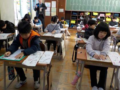 始業式の後、初めての書き初め大会!みんな真剣に取り組みました。冬休み中に練習した成果を発揮できた子、練習したのに緊張して思うように書けなかった子など、いろいろでした。嬉しさも悔しさも次につなげてほしいと思います。