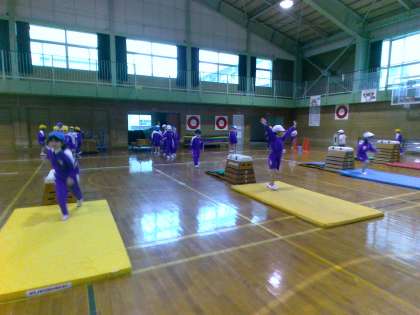 跳び箱遊びをしています。 自分にあったコースを選び、楽しんで練習しています。