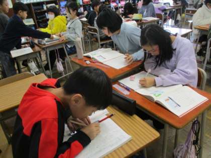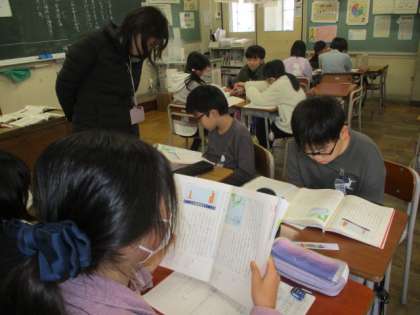 「ウナギのなぞを追って」段落ごとノートにきちんと整理しながら、自分たちで読み進めています。自然とグループ内で相談し合う姿も見られます。
