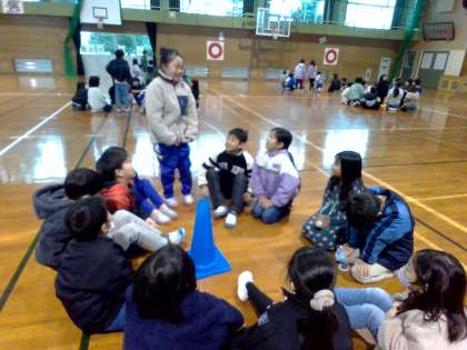 月曜日の昼休みに、学年のなかよし集会を行いました。子供たちが司会進行をし、みんなで楽しく重なりおににチャレンジしました。初めてチャレンジする子供たちも他のクラスの友達にルールを教えてもらいながら元気いっぱいに動きました。子供たちの笑顔があふれるすてきな集会となりました。