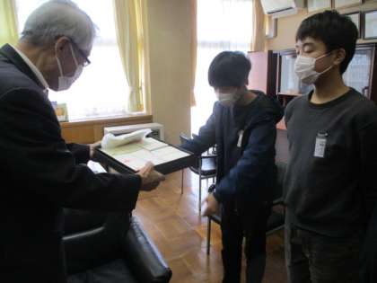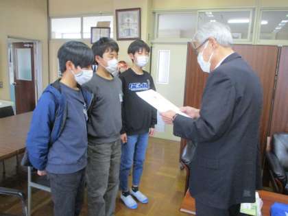 6年生の世界寺子屋運動プロジェクトの代表者が、富山ユネスコ協会の方に、みんなで協力して集めた書きそんじハガキをお渡ししました。今年は、約800枚を贈呈することができました。ハガキの他にも切手や商品券等をポストに入れてくださった方もいて、嬉しかったです。一人でも多くの子供たちが寺子屋に通って学ぶことができたらいいですね。