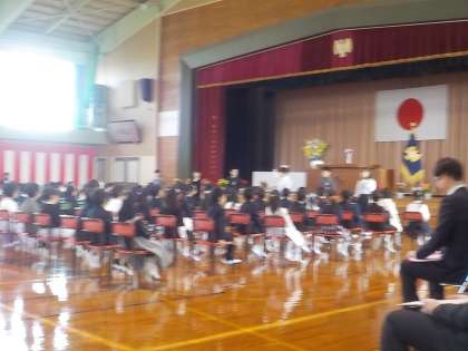 4月5日9:30より入学式を行いました。「聴く力を鍛えていきましょう」という話を、校長先生と視線を合わせながら聴く1年生が素敵でした。その後、6年生代表によるお祝いの言葉を、目を輝かせながら聴いていました。