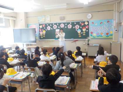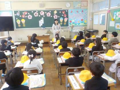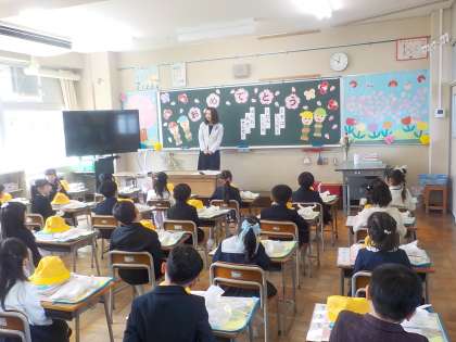 担任の先生との出会いです。先生と目を合わせて、しっかりと話を聴いています。