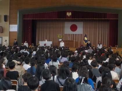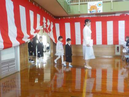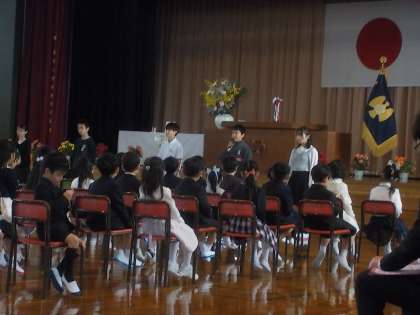 90名の新入学児童を迎え、令和6年度入学式を行いました。式での新1年生の元気な返事が印象的でした。