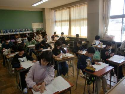 6年生 前期学力調査 公開日 2024/04/10 更新日 2024/04/10 6年生の活動 前期学力調査を行いました。みんな、真剣に問題を取り組んでいます。5年生の学びが発揮できるように、明日もがんばりましょう。