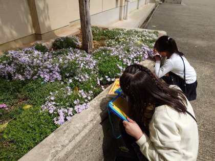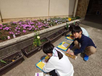 図画工作科の学習です。 色とりどりの花を表現して、春を満喫しています。