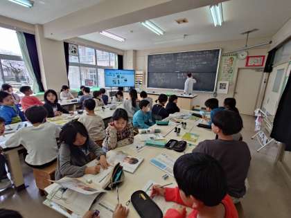 「季節によって暖かさが変わると、植物の成長や動物の活動の様子はどのように変わるか」をテーマに、これまで見知った生活体験を出し合っています。