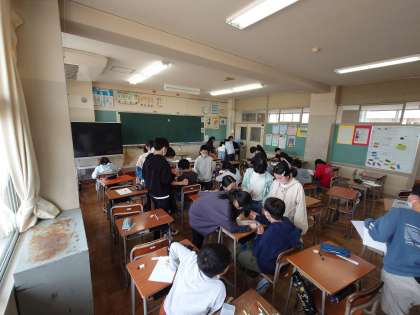 対称の軸を活かして、自ら線対称な形を作り出す活動に励んでいました。