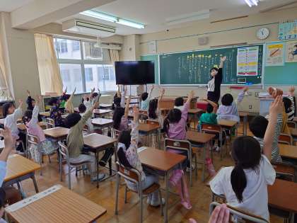 3組・・・先生との楽しいやり取りの中で、全員挙手した瞬間です。