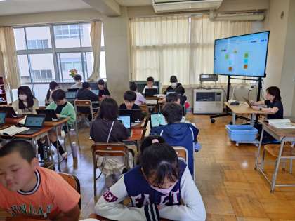 3組 国語科の授業風景です。筆者が使っている用語の用例の意味を調べ、自らも使ってみることで理解を豊かにしています。