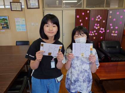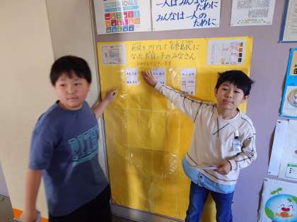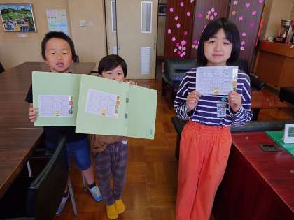 最上級のレベル「名誉島民」に達した子は、カードに名前を記し、校長室前に掲示することになっています。