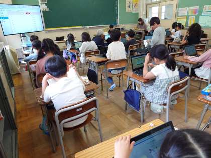 1組は聴力検査を受けていました。2,3組は落ち着いて学習に取り組んでいました。