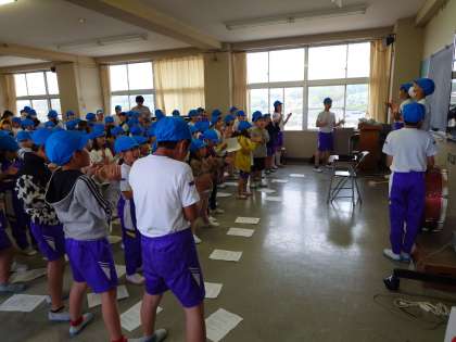 「呉羽っ子タイム」を使って、初めての全体練習を行いました。
