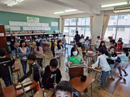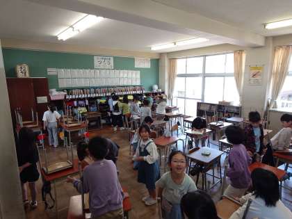 ちょうど読書タイムを終えて、清掃へと動き始めている瞬間です。