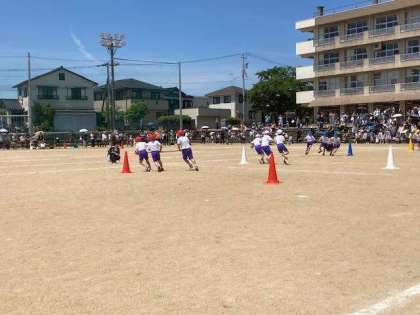 遠目には少し分かりにくいのですが、この競技も様々な工夫点があります。限られた時間の中でチームワークを磨きました。