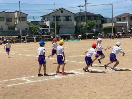 全校児童の声援を浴びてバトンをつなぎました。