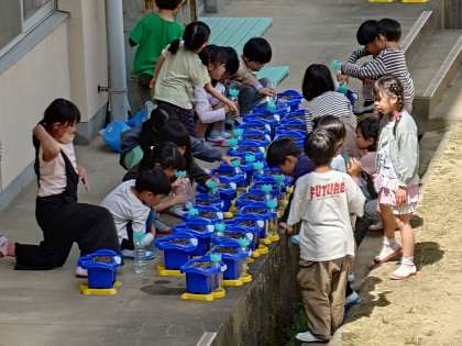 1年生も栽培による生活科の学習を始めています。 週明けにはいろんなドラマが生まれることでしょう。