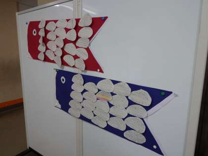 「今年のめあて」こいのぼり 公開日 2024/05/21 更新日 2024/05/21 委員会活動 環境委員会の呼びかけによる、「今年のめあて」こいのぼりが完成。 鱗形のワークシートに、一人一人のめあてが記されています。 一つ一つを読んでいくと背筋が伸びる思いになります。 このめあてが空にたなびくように一つ一つ成就されていくといいですね。