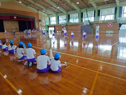 1年生と6年生のペア学級でシャトルランを計測しています。