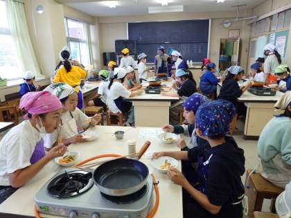 6年生 野菜炒めのお味は? 公開日 2024/05/28 更新日 2024/05/28 6年生の活動 2組が調理実習に挑みました。 「お味はどうですか?」 と、インタビューしたところ、 「見た目は悪いですが、味はいいです!」 との答えが返ってきました。